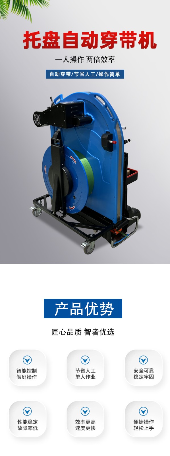 - 主要應(yīng)用在需要高效、精準(zhǔn)穿帶的場(chǎng)合。在大型自動(dòng)化包裝生產(chǎn)線中,穿帶機(jī)與打包機(jī)等設(shè)備配合,確保包裝帶準(zhǔn)確地穿過(guò)產(chǎn)品或包裝結(jié)構(gòu)。