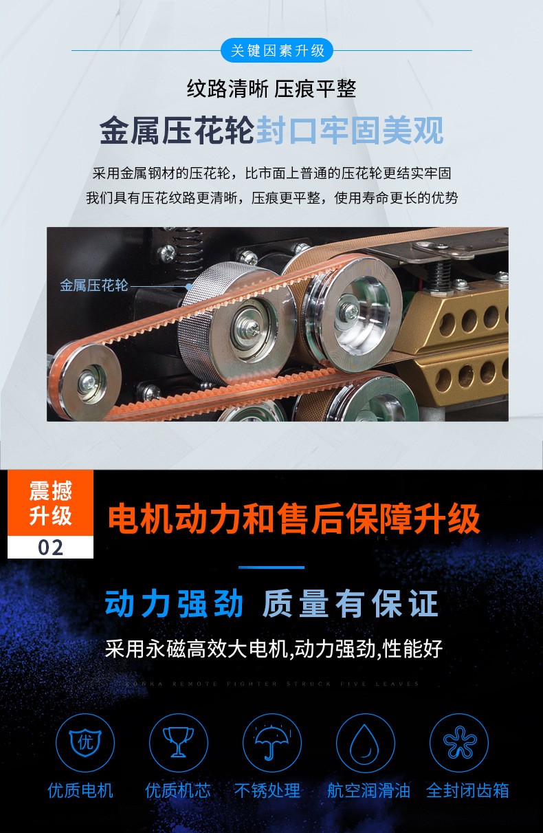 - 針對(duì)鋁箔材料或者鋁箔復(fù)合包裝材料設(shè)計(jì)。鋁箔具有良好的阻隔性,能有效防止氧氣、水分等進(jìn)入包裝內(nèi)部。這種封口機(jī)可以確保鋁箔包裝的密封性,常用于食品、藥品、保健品等行業(yè),如藥品的鋁箔泡罩包裝的封口。