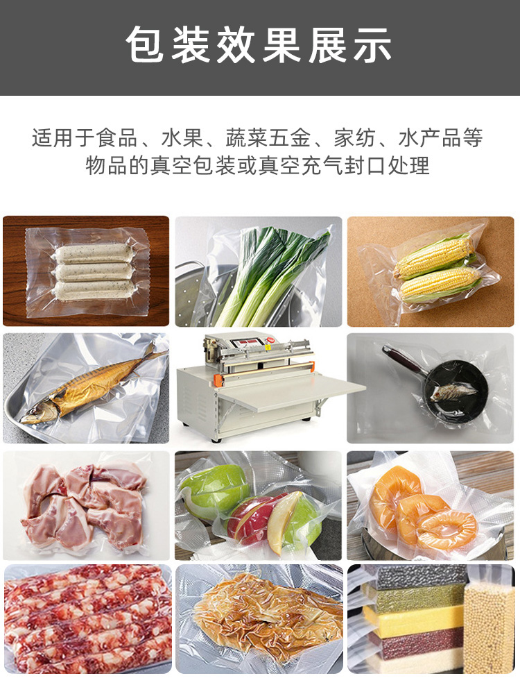 • 密封性能:外抽真空包裝機的整體密封性能對真空度至關重要。如果機器的抽氣室、包裝袋封口處等部位存在密封不嚴的情況,外界空氣會不斷進入,導致抽氣速度變慢,難以達到設定的真空度。