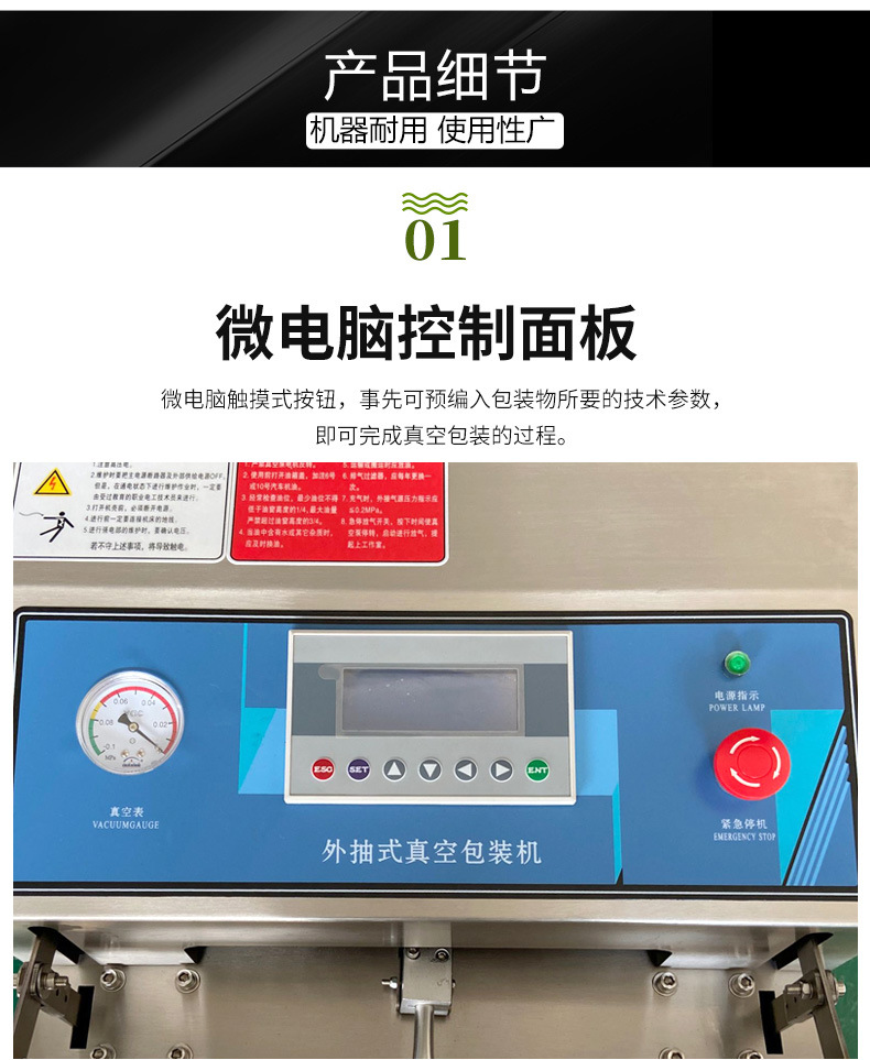 - 真空腔清潔:定期打開真空腔,清理腔體內(nèi)的雜物、灰塵和殘留的包裝材料。尤其要注意清理真空腔的角落和縫隙,可以使用小型的清潔工具,如毛刷等,確保無雜物殘留,以免影響真空密封效果。