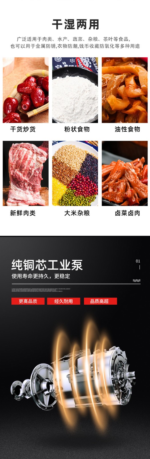 - 真空泵規格:這是決定效率的基礎。真空泵的抽氣速率(單位 m3/h)越快,達到目標真空度的時間就越短,單次包裝周期隨之縮短。