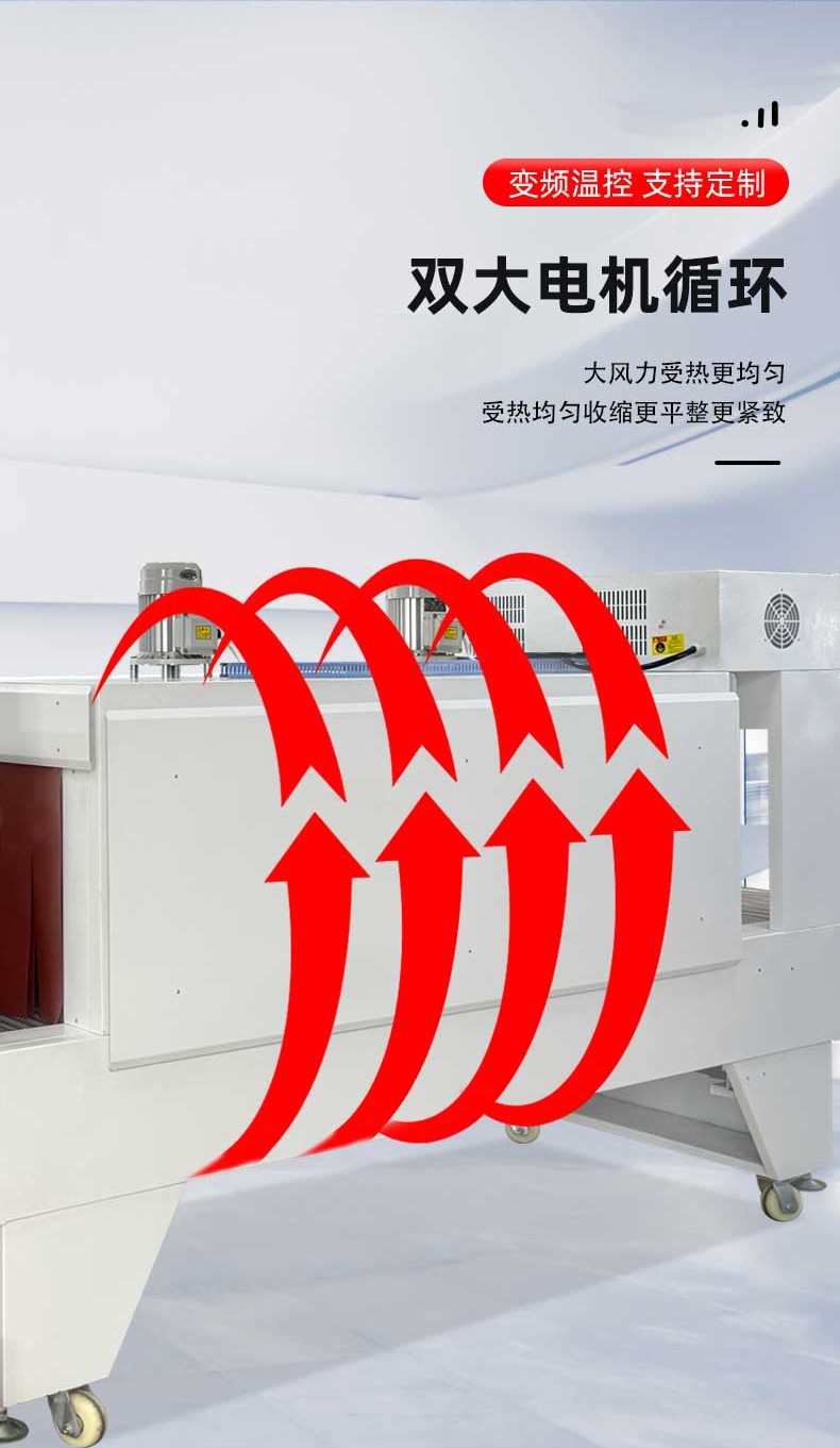 袖口式封切熱收縮包裝機憑借 高效密封、防塵防潮、貼合定型、便于堆疊運輸 的核心優(yōu)勢,廣泛應(yīng)用于多行業(yè)的標準化包裝需求,尤其適配批量生產(chǎn)的規(guī)則 / 異形產(chǎn)品組合包裝。 一、食品飲料行業(yè)(最核心應(yīng)用領(lǐng)域) 瓶裝 / 罐裝產(chǎn)品組合包裝 礦泉水、啤酒、飲料、涼茶等 多瓶捆綁包裝(如 6 瓶 / 12 瓶 / 24 瓶組),無底托收縮膜直接包裹,替代傳統(tǒng)紙箱 / 膠帶,降低包裝成本 30%+,且透明膜可展示產(chǎn)品品牌; 罐頭、醬料瓶、食用油桶等 單瓶 / 多瓶密封包裝,防止運輸過程中泄漏、氧化,延長保質(zhì)期(尤其適用于含油脂、易受潮食品)。 零食與烘焙產(chǎn)品包裝 餅干盒、薯片罐、面包禮盒等 多盒組合包裝(如 3 盒 / 6 盒套裝),收縮膜緊密貼合,避免禮盒散開,同時防塵防潮,提升禮盒檔次; 冷凍食品(如速凍水餃、湯圓)的 外箱收縮包裝,強化箱體密封性,防止冷鏈運輸中受潮解凍。 符合食品級包裝標準(適配 PE/POF 無毒膜),包裝速度快(8-15 包 / 分),適配生產(chǎn)線連續(xù)作業(yè),同時透明包裝便于終端貨架展示。 高效量產(chǎn),適配規(guī)模化生產(chǎn) 全自動機型包裝速度達 8-25 包 / 分鐘(單排)、15-40 包 / 分鐘(多排),支持 24 小時連續(xù)作業(yè),匹配食品飲料、日化等行業(yè)生產(chǎn)線節(jié)拍; 換產(chǎn)靈活,參數(shù)化存儲 100 + 組產(chǎn)品規(guī)格,切換僅需 2-5 分鐘,無需拆卸機械部件。 包裝效果優(yōu)質(zhì),防護與展示兼具 熱收縮膜緊密貼合產(chǎn)品輪廓,形成密封、防潮、防塵、防刮的立體包裝,降低運輸損耗率至 0.5% 以下; 支持透明膜 / 彩印膜包裝,透明膜可展示產(chǎn)品細節(jié),彩印膜可印刷品牌 LOGO 與促銷信息,兼顧防護與品牌營銷。 成本可控,降本增效顯著 無底托包裝設(shè)計替代傳統(tǒng)紙箱、膠帶,包裝材料成本降低 30%-50%,同時節(jié)省倉儲與運輸空間 40%; 采用紅外加熱或石英管加熱技術(shù),比傳統(tǒng)電熱絲節(jié)能 30%-50%,待機自動降功率,長期運行成本更低; 全自動機型僅需 1 人巡檢,降低人工成本 80%,避免人工操作誤差。 兼容性強,適配多場景需求 可包裝方形、圓形、異形等多種形態(tài)產(chǎn)品,支持單件 / 多件組合包裝,產(chǎn)品尺寸覆蓋 50mm×30mm×20mm 至 800mm×600mm×500mm(可定制更大規(guī)格); 適配 PE、POF、PVC 等多種熱收縮膜,滿足食品級(FDA/ROHS)、醫(yī)藥級(GMP)、工業(yè)防靜電等不同行業(yè)標準。 智能化操作,易上手易維護 PLC 觸控屏可視化操作,參數(shù)設(shè)置直觀,普通工人 1-2 小時即可獨立操作,支持故障自動報警與修復(fù)提示; 模塊化結(jié)構(gòu)設(shè)計,封刀、加熱管等易損件更換便捷,日常維護僅需清潔、緊固,維護成本降低 40%。 環(huán)保合規(guī),符合綠色生產(chǎn)趨勢 采用可回收、無毒環(huán)保膜材,無粉塵、無異味排放,符合全球綠色包裝政策; 減少紙箱、膠帶等不可降解材料使用,降低快遞垃圾與資源浪費,適配電商、物流行業(yè)環(huán)保要求。