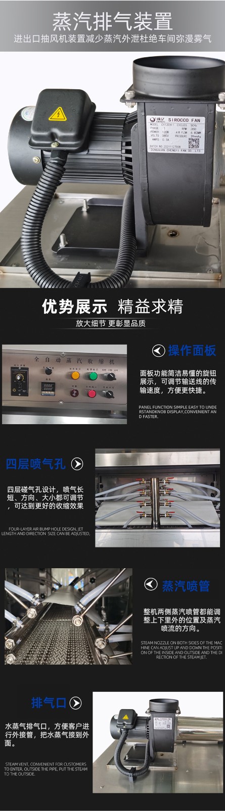 • 精準控制:配備的控制系統可精確調節蒸汽的溫度、壓力和噴射時間,實現對收縮效果的精準控制。