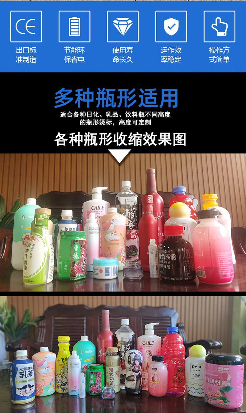 廣泛應用于食品、飲料、醫藥、化妝品、五金工具、電子產品、玩具、文具等行業,用于對產品進行收縮包裝,以實現防潮、防變質、美觀等目的。