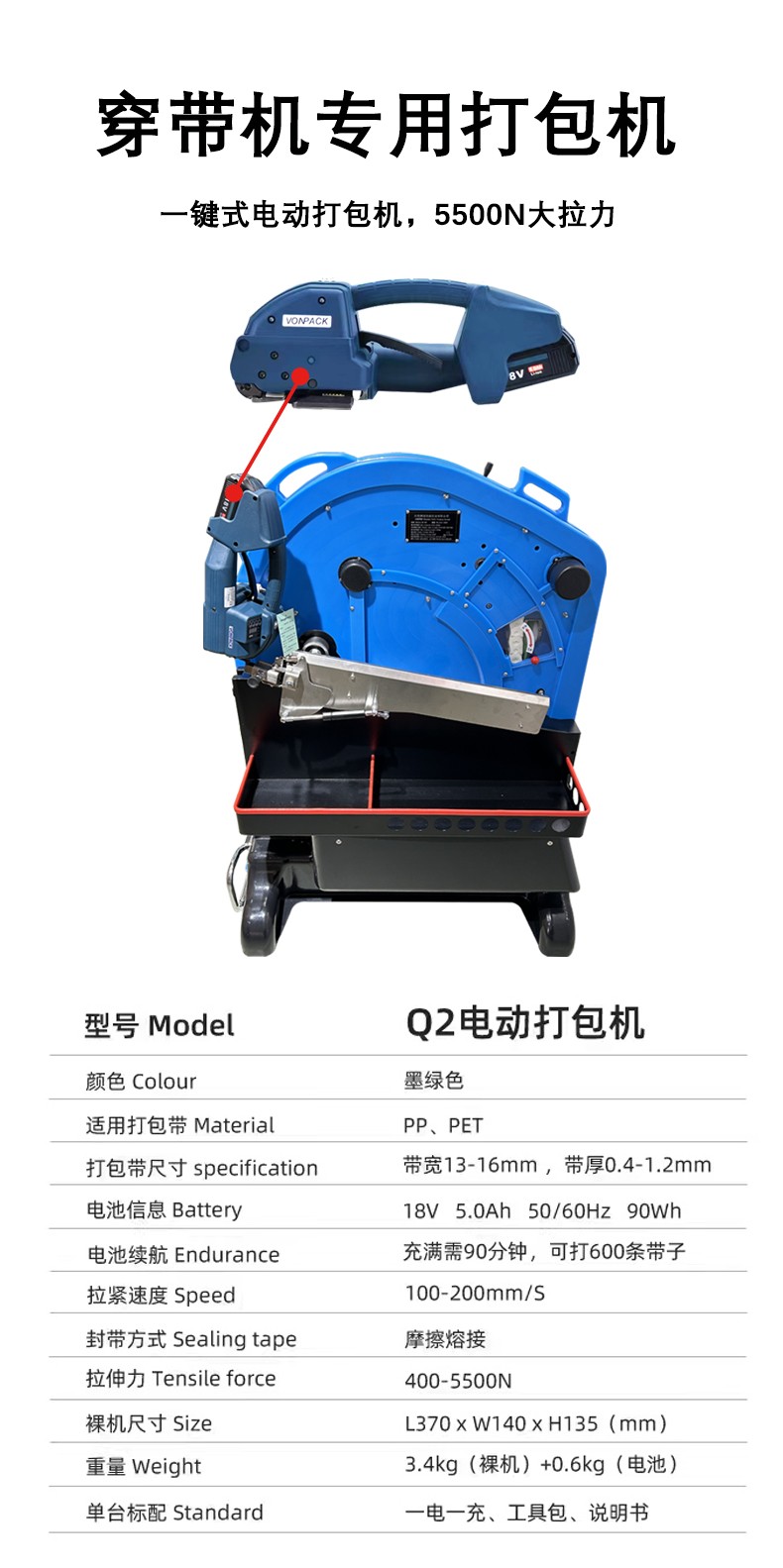 • 穿帶機是一種在包裝流程中起輔助作用的設備,主要用于將打包帶穿過被包裝物品周圍或包裝結構中的特定位置,以便后續進行打包操作。它可以被看作是包裝自動化生產線中的一個環節,能夠有效提高打包的效率和準確性。