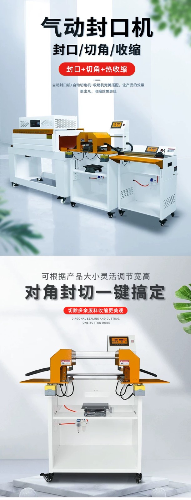 氣動封口切角熱收縮機是一種常用于包裝行業的設備,以下為你介紹其原理、特點及應用場景: