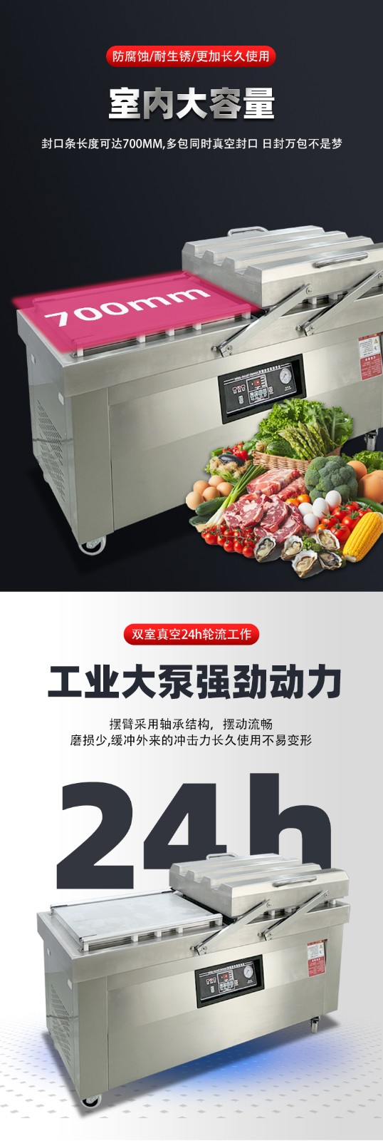 - 循環往復:左室、右室始終保持 “一室抽真空密封,一室裝袋準備” 的交替狀態,兩個真空室的作業周期無縫銜接,沒有任何空閑等待時間。