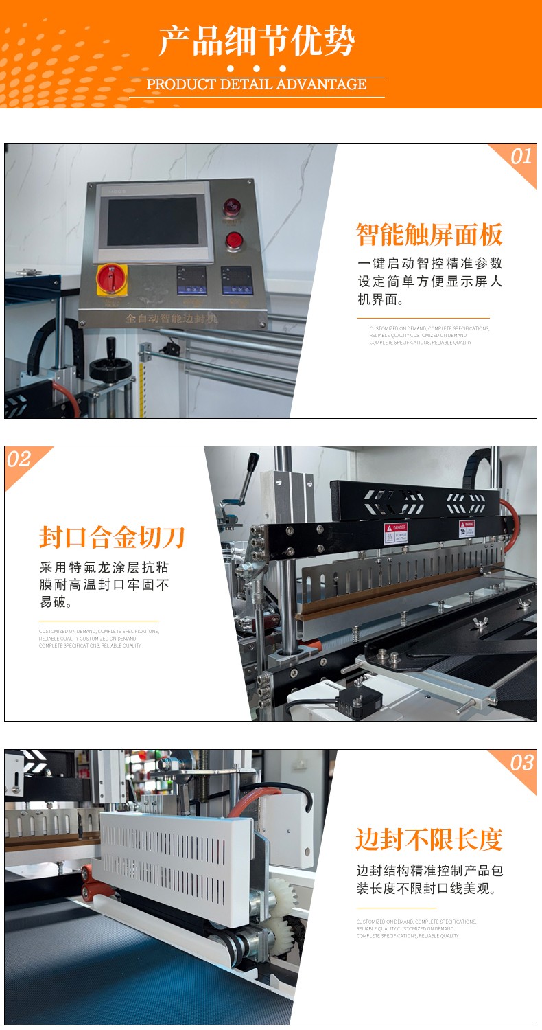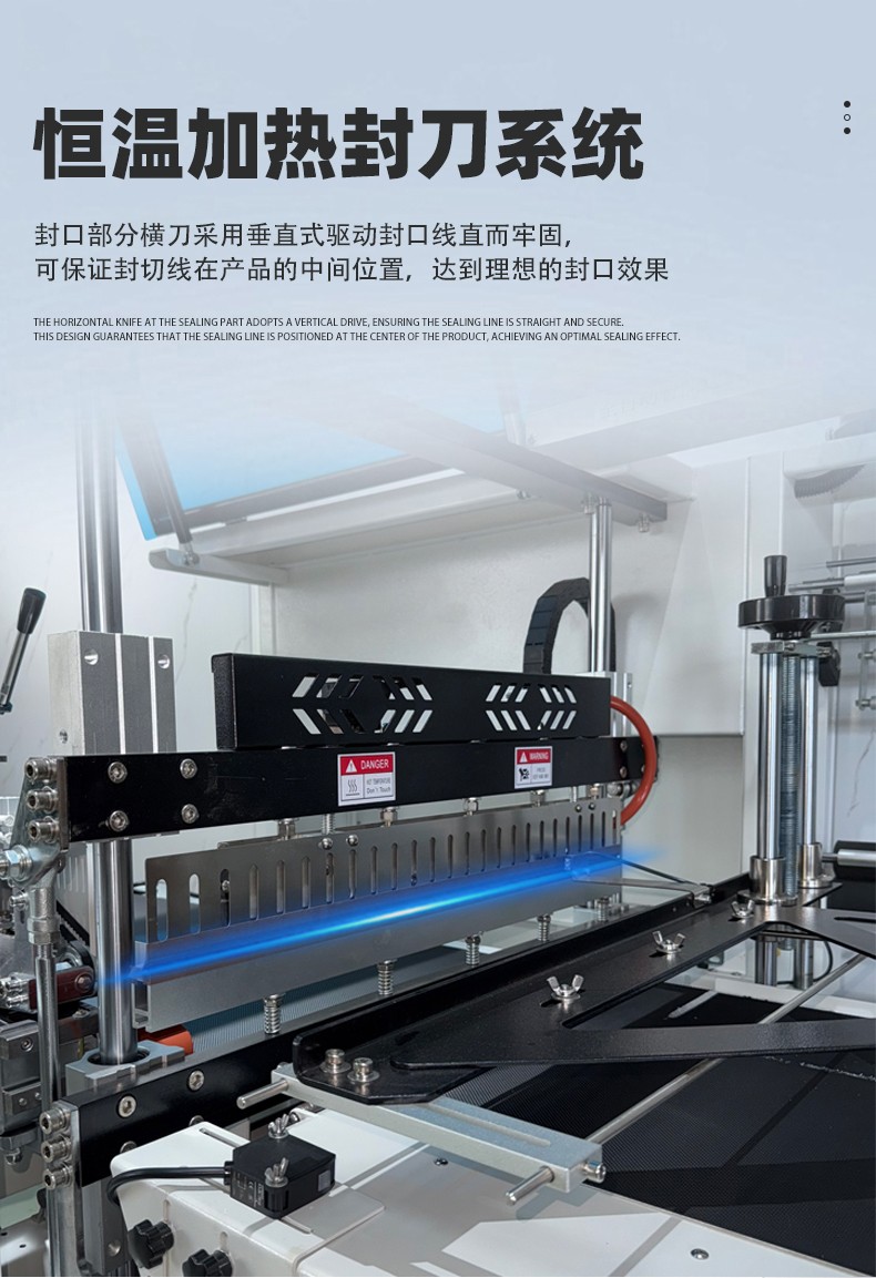 • 封口質量好:采用恒溫合金封刀,鍍有特氟龍不粘表層,封口不焦化、不冒煙,且封口線直而牢固,平整美觀。