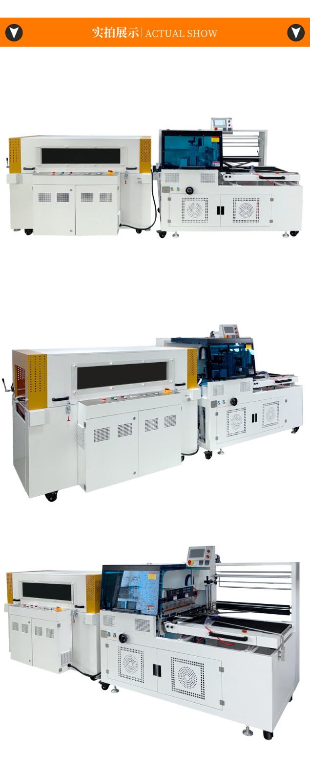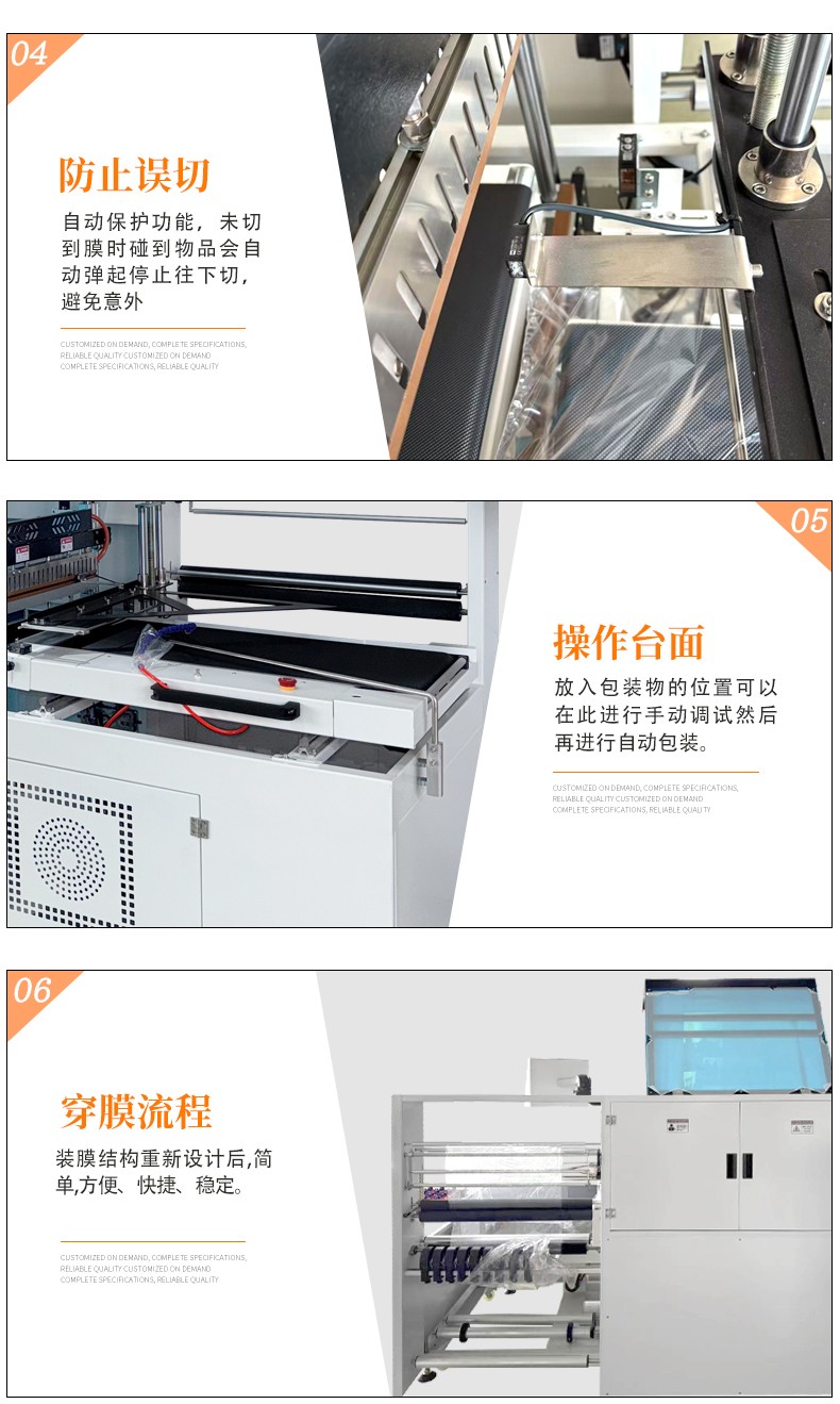 利用薄膜輸送系統將包裝薄膜圍繞產品,然后通過邊封裝置對薄膜的側邊進行密封,形成一個包裹產品的袋子。之后,產品被輸送到熱收縮通道,熱空氣使薄膜收縮并緊緊貼合在產品表面,完成包裝。